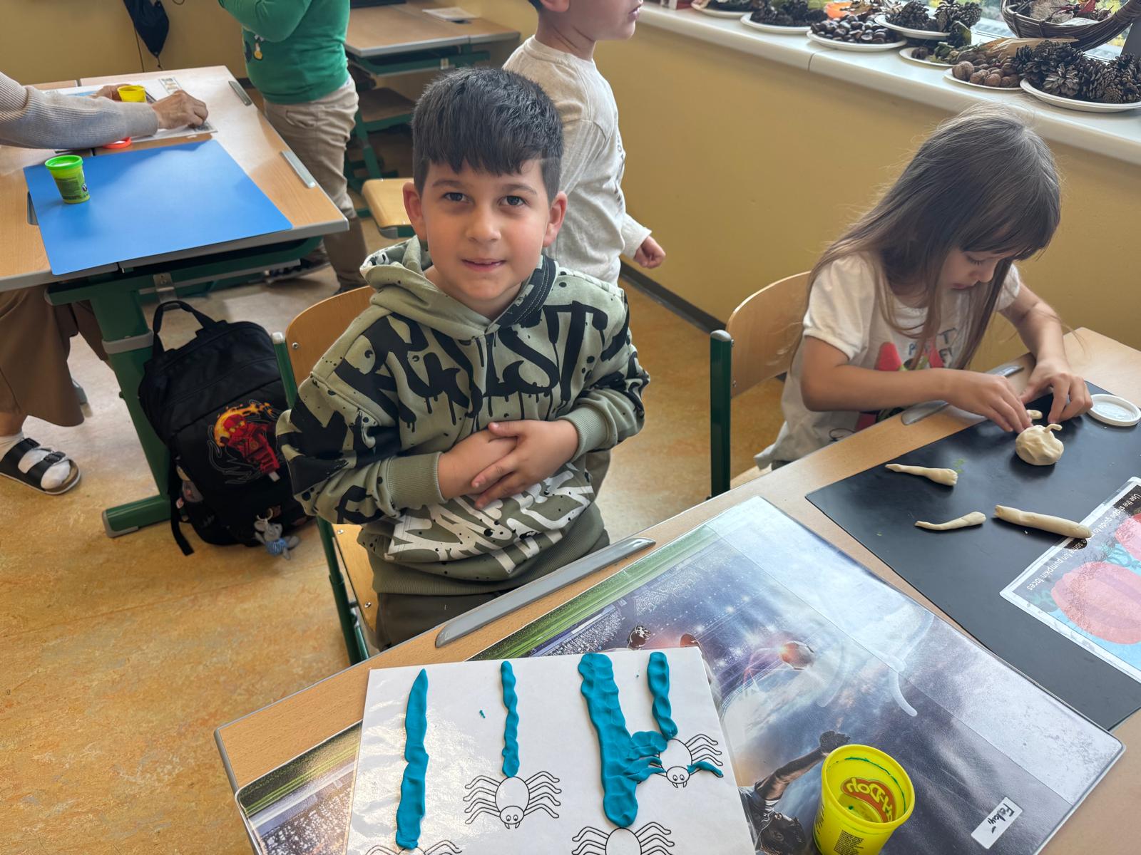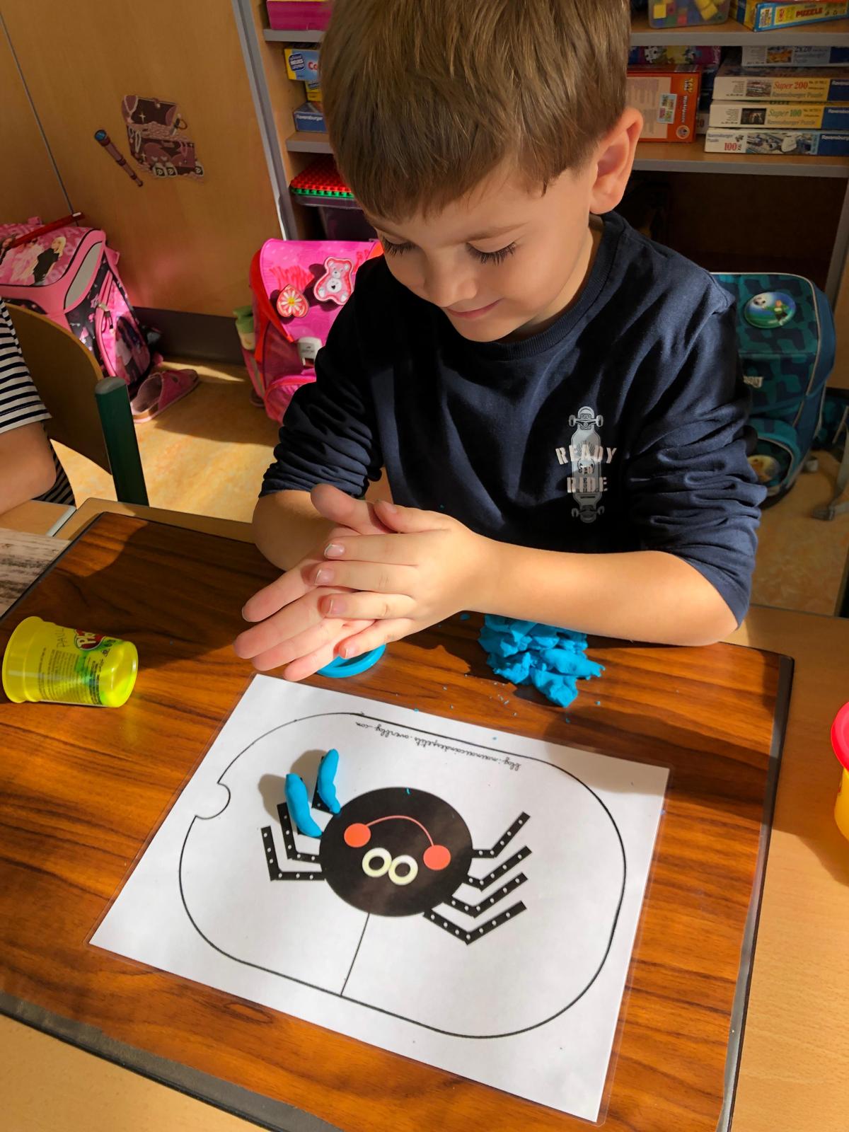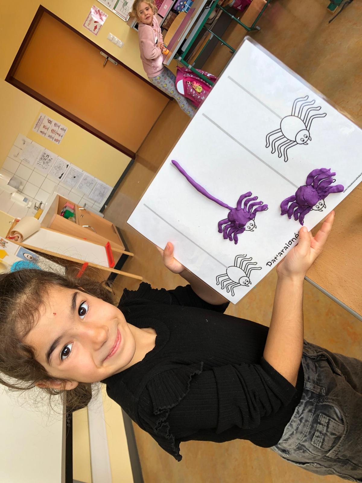 Die Kinder der Vorschulklasse haben zur Halloween Zeit gruselige Spinnen und Würmer gebaut.