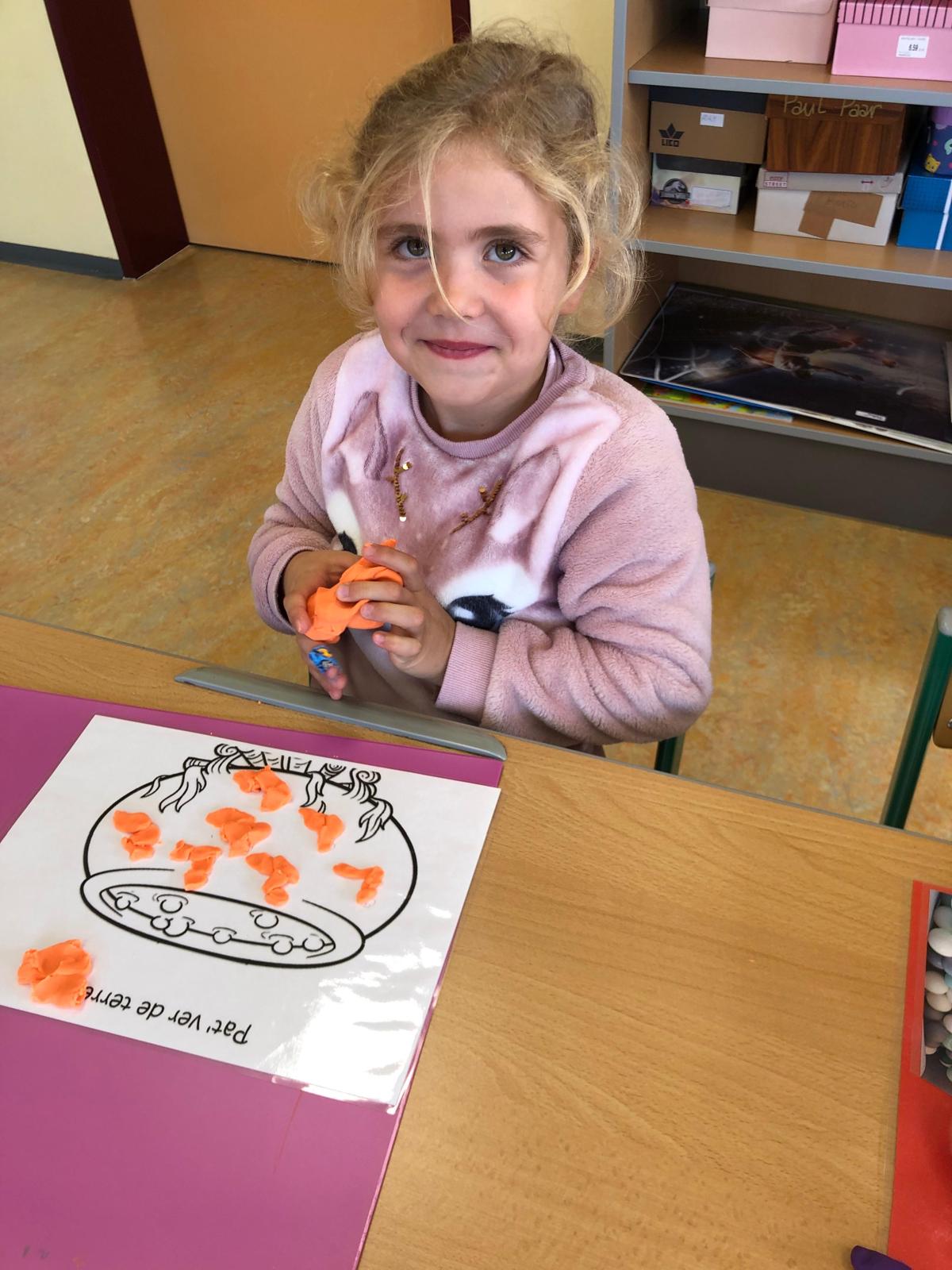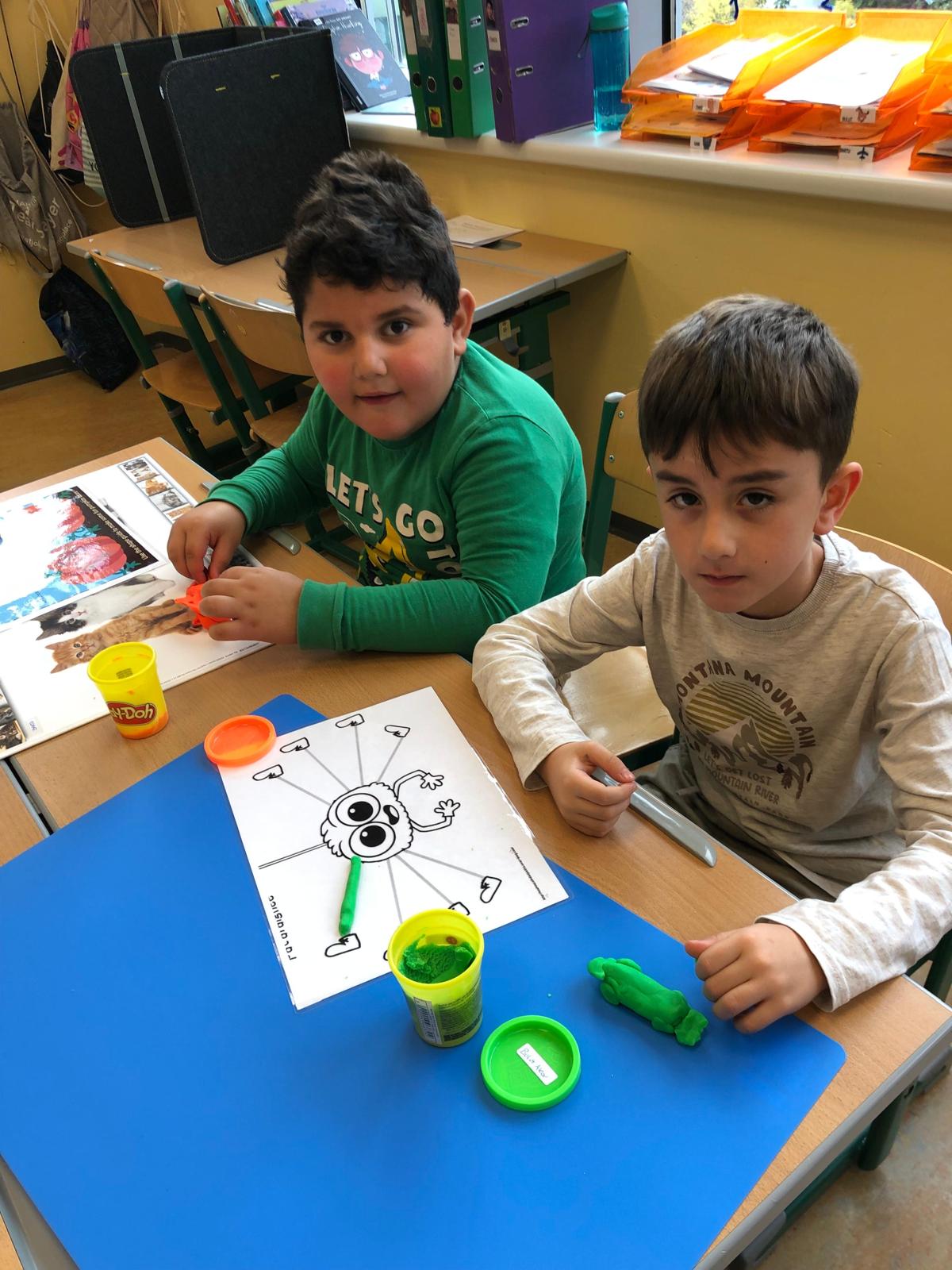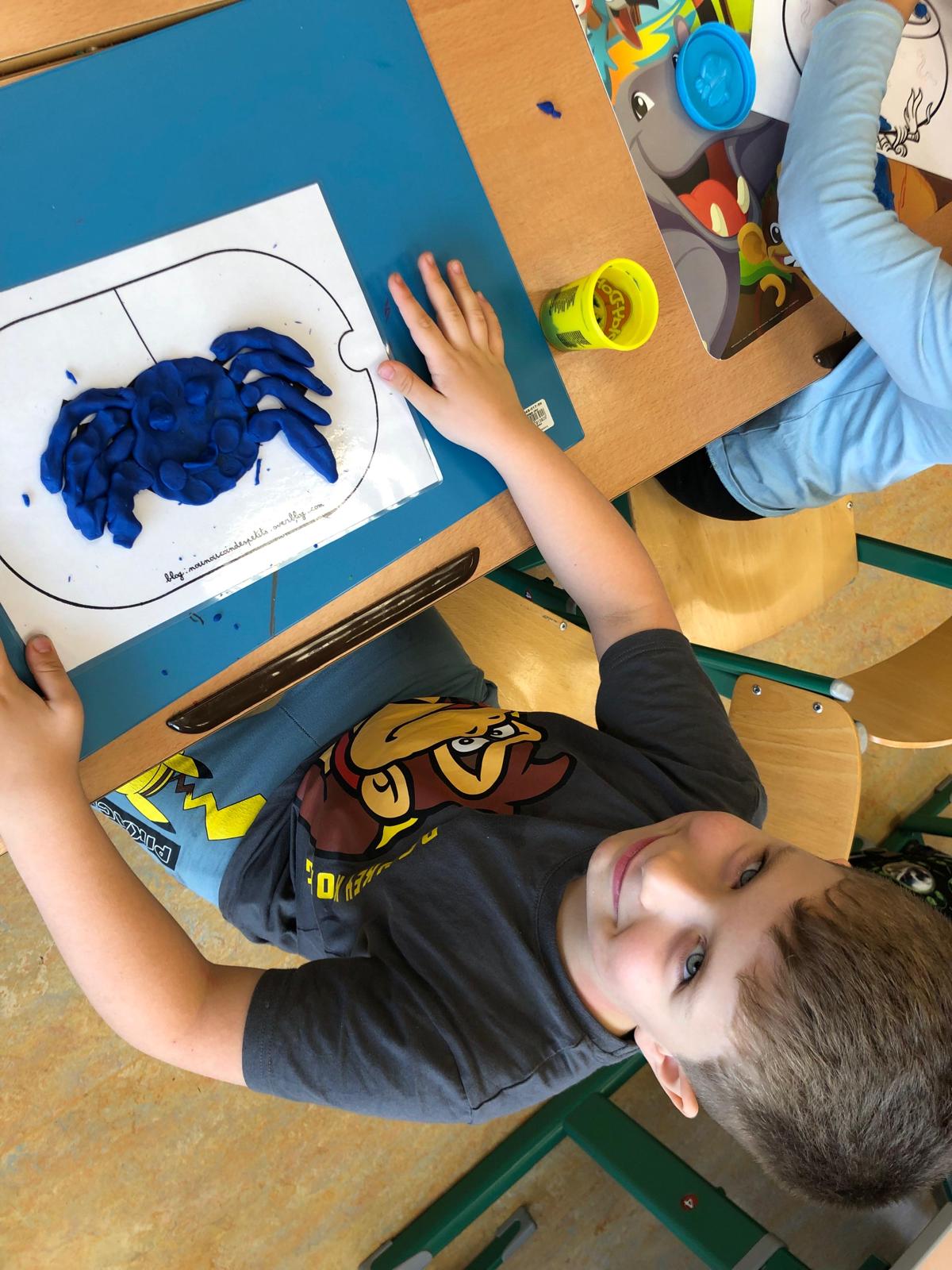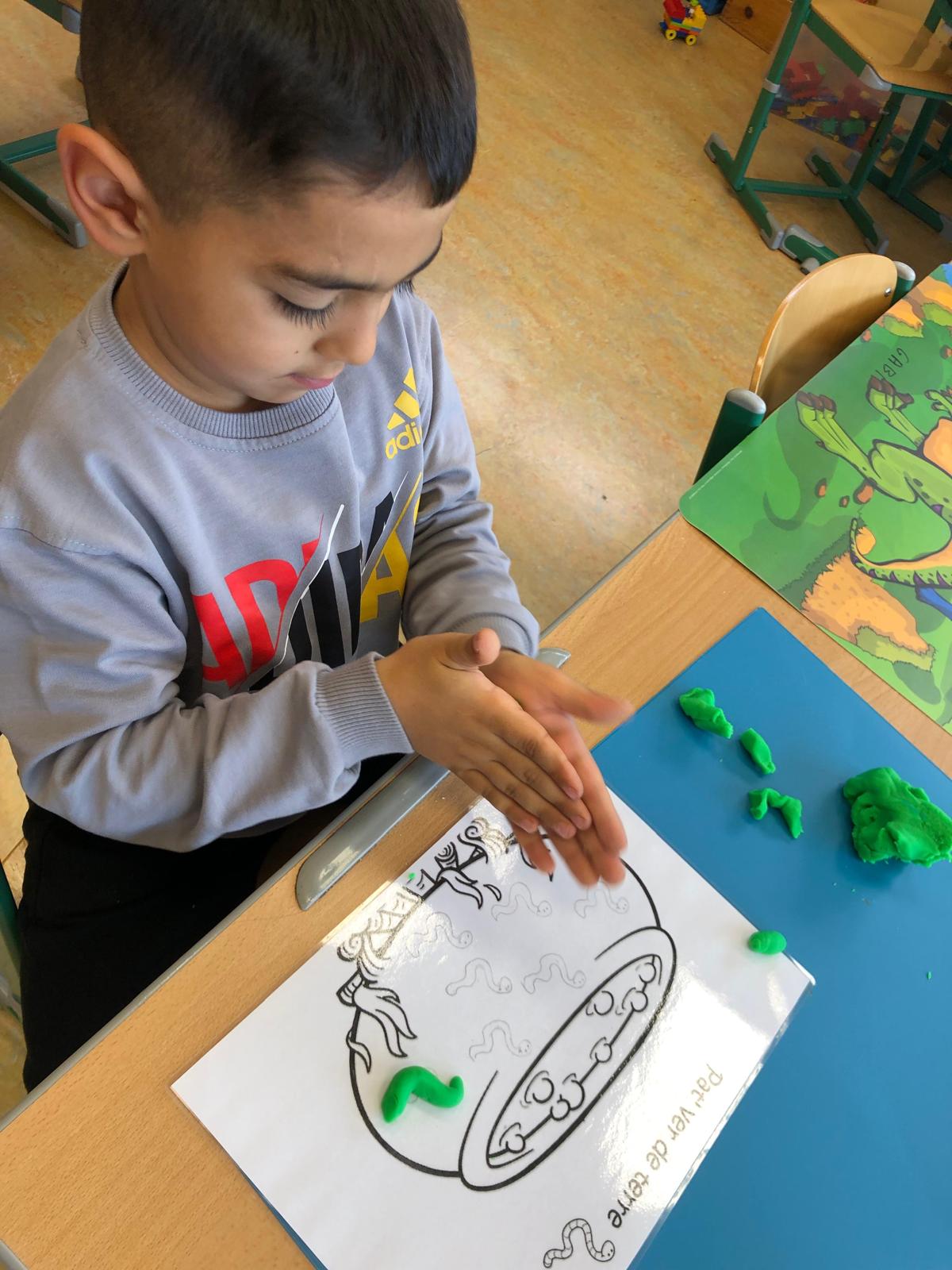 Die Kinder der Vorschulklasse haben zur Halloween Zeit gruselige Spinnen und Würmer gebaut.