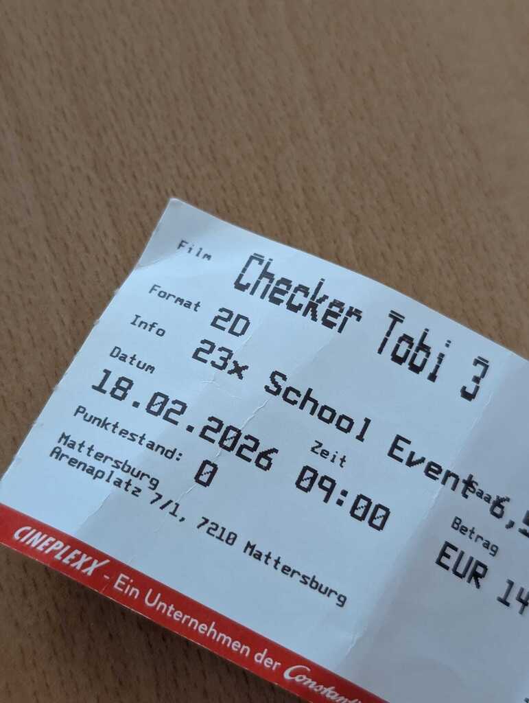 Die Kinder der 4. Klassen machten am 18.2.26 einen Ausflug ins Kino! Dort sahen sie den neuen Film Checker Tobi 3. Es war sehr informativ und interessant!