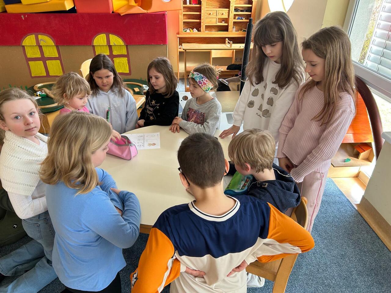 Wir Kinder der 3a besuchten die kommenden Schulkinder im Kindergarten Mühlgasse. Wir lasen ihnen ein Buch vor, übten Schreiben und Schneiden und hatten eine schöne Zeit miteinander.