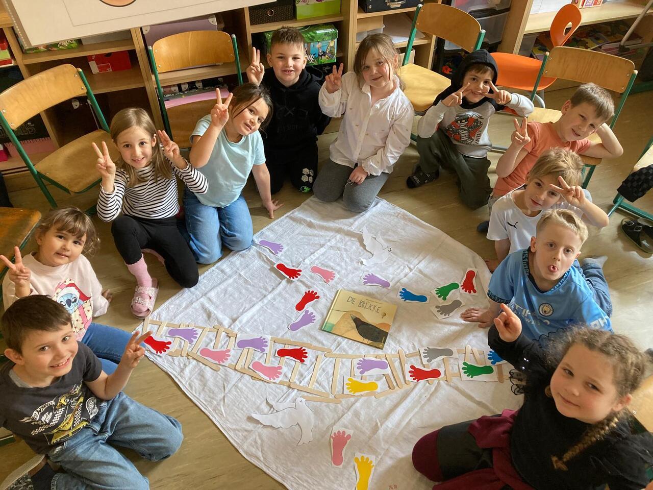 Im Rahmen der Schulprojekts "Frieden" hat sich die Klasse 1b bereits intensiv mit diesem bedeutenden Thema beschäftigt. Anhand ausgewählter Bilderbücher setzten sich die Schülerinnen und Schüler altersgerecht mit Fragen rund um Frieden, Zusammenhalt und ein respektvolles Miteinander auseinander.